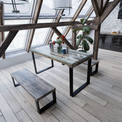 We wnętrzach LOFTOWYCH które wzorują się na starych przestrzeniach przemysłowych, doda charakteru i skoncentruje uwagę na przestrzeni wokół, stabilnie unosząc ciężki drewniany lub szklany blat.