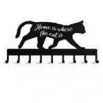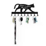 Nigdy więcej nie zgubisz klucza dzięki tej stylowej tablicy na klucze „Home is where the cat is”. Zamontowana na ścianie, pozwala łatwo znaleźć klucze i przechowywać je na odpowiednich haczykach.
